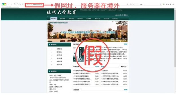 (仿冒《现代大学教育》期刊投稿网,发布虚假“发稿渠道”)