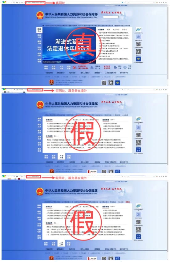 (仿冒人力资源和社会保障部相关网站,网址域名多次跳转)